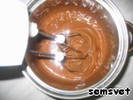 Потом миксер можно выключить, как следует вычистить остатки шоколада из кастрюльки в общую массу и ещё немного взбить. -