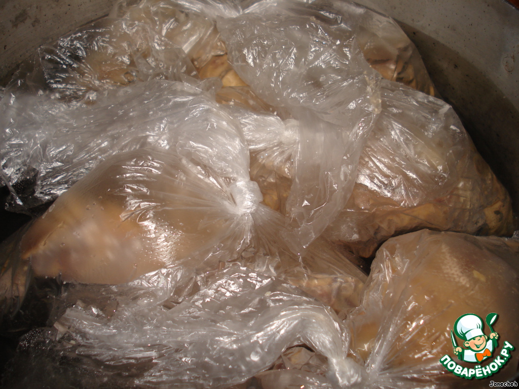 Варим под крышкой в горячей воде, 1 час на одной стороне и еще 1 час на другой стороне. (Я делала 2 порции, поэтому у меня 4 пакета)