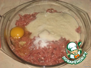 Смешать мясной фарш, хлеб, 1 яйцо, соль до однородной массы.