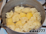 Пока жарится мясо, отварить картофель и цветную капусту (можно замороженную) или белокочанную в подсоленной воде. Слить воду и остудить.