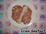 Мясо отбиваем, солим, перчим, мажем чесноком с обеих сторон.