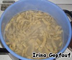 Отвариваем теперь лапшичку. Лапшу кидаем уже в кипящую подсоленную воду и варим её 10-15 минут, в зависимости от толщины.