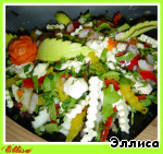 Сбрызгиваем салат соевым соусом и заправляем сметаной с йогуртом.
