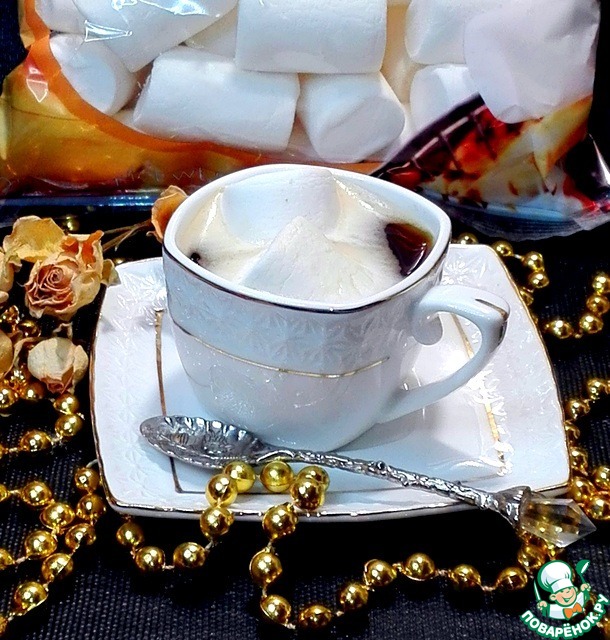 Варим кофе, наливаем в чашку, сверху кладем несколько маршмеллоу.