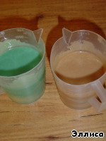 Одновременно из 2-х шейкеров перелить в коктейльный бокал так, чтобы получились вертикальные слои.