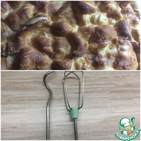 Что сказать - легко и быстро делается тесто, в духовке она стоит именно 40 мин, ни больше ни меньше. Получается нежной и воздушной. В самом деле тесто похоже на эклерное.