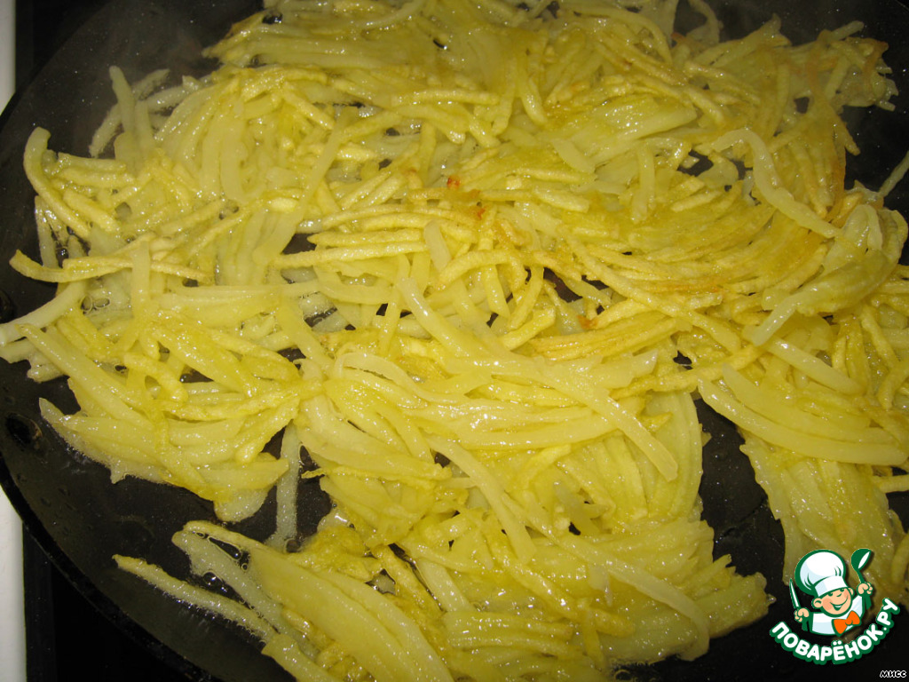 Пережариваем картофель на раскалённом растительном масле.