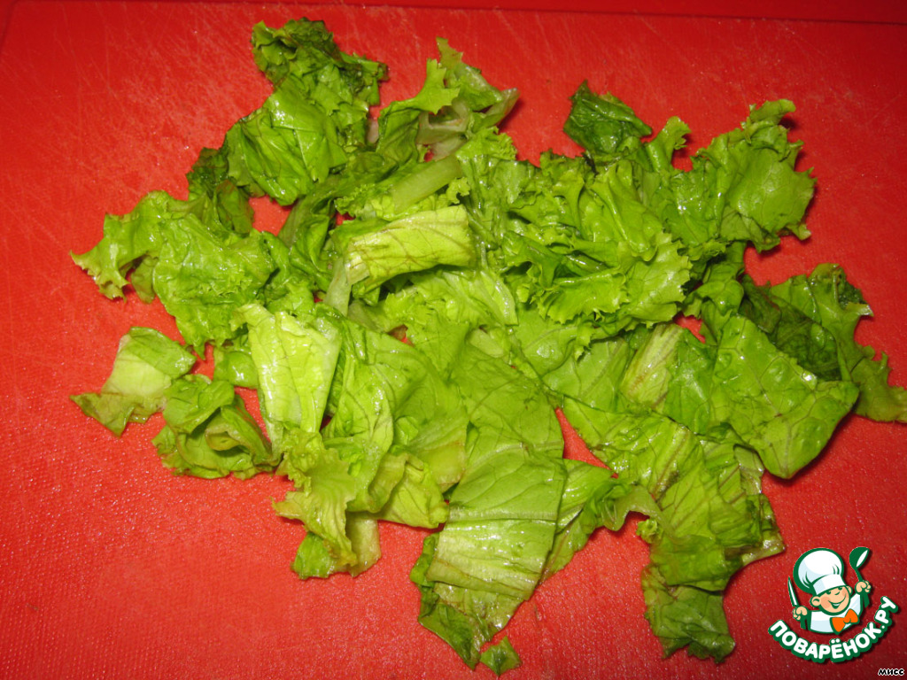 Нарезаем или рвём руками листья салата.
