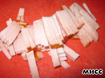 Тонко нарезаем карбонад.