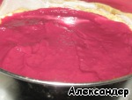Достаем корж из духовки и, охладив до чуть теплого крем, выкладываем на корж. Опять отправляем в духовку минут на 20.