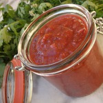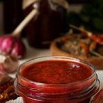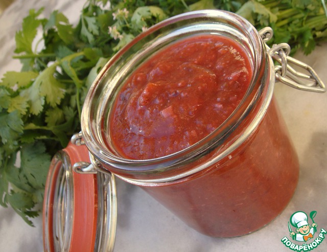 Готовый соус разлить в СТЕРИЛИЗОВАННЫЕ банки и закатать. Хранить можно в кладовке.