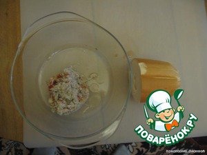 Очень интересное сочетание мяса краба и плавленого колбасного сыра.