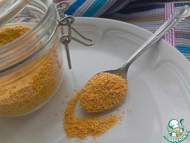 [+4]У меня цукешки, полон огород разных, сушила желтоплодные, после измельчения порошок получился приятного кремового цвета (но камера как-то уж слишком его поджелтила) и с лёгким ароматом чего-то подпеченного. Сушу я в сушилке, порезав на довольно тонкие полоски, меньше полсантиметра, часов 5-6, они не прилипают.