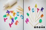 Зубочистки сделала сама, при помощи клея и цветного картона. Зубочистки у меня необычные, в виде букв. Каждая буква - это имя моего лучшего одноклассника(ницы). Обязательно покажу им фото своего готового блюда, и расскажу, по какому поводу приготовила его.