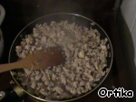Отправляем фарш на разогретую сковороду с маслом, немного обжариваем (1-2 минуты) и добавляем лук, соль, перец, приправы по вкусу; обжариваем еще минут 5 и отставляем, чтоб остывал.