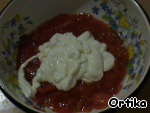 Готовим заливку: оставшиеся помидоры натираем на терке, добавляем сметану,