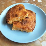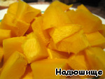 Но для запеканки нужен полуготовый тыквенный фарш, поэтому пропекаем ее немного дольше, чем обычно. Вынимаем из духовки, удаляем корку и режем большими ломтиками. -