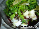 Готовим маринад: зелень, лук, порей нарезаем, смешиваем с красным виноградным вином, добавляем специи,