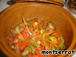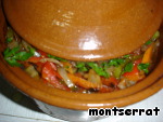 накрываем слоем овощей, заливаем смесью винного маринада и воды, накрываем крышкой и ставим в горячую духовку на час.