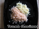 Трем на мелкой терке желтки, а креветки пропускаем через мясорубку. Смешиваем, добавляем майонез, соль, горчицу (по вкусу).