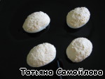 Варим креветки и яйца. Яйца разрезаем пополам, вынимаем желтки.