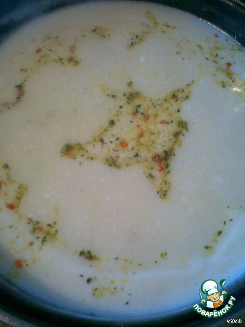 Готовый соус добавляем в кипящий суп - даем покипеть минут 10.
