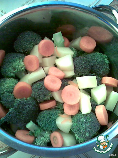 Чистим и моем овощи - брокколи, картофель, морковь. -