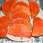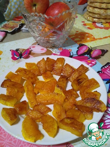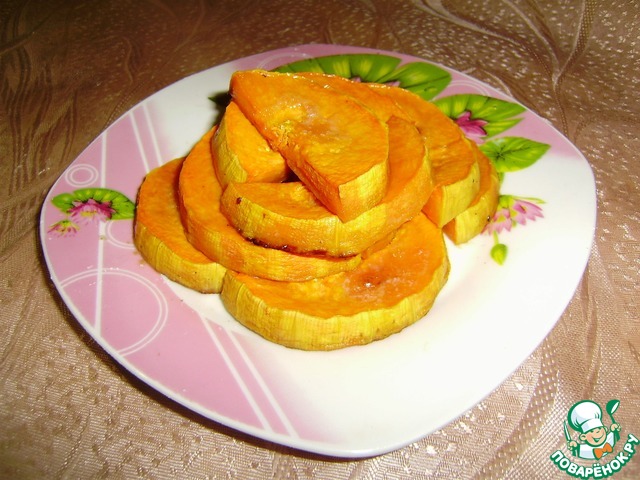 Я к вам опять с тыквой. Просматривая, что из неe можно приготовить, остановилась на варианте, который вам и предлагаю. Тыква, запеченная в духовке с сахаром, меня очаровала - нежная, утомленная, она просто тает во рту.
