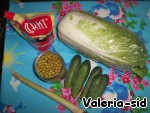 Приготовить все ингредиенты. Капусту, зелень и огурцы помыть. С горошка слить воду.
