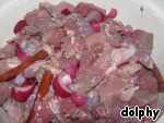- Баранина (мякоть, порезанная на небольшие кусочки) — 1,1 кг
