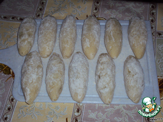 Сформировать рулетики и обвалять их в муке.