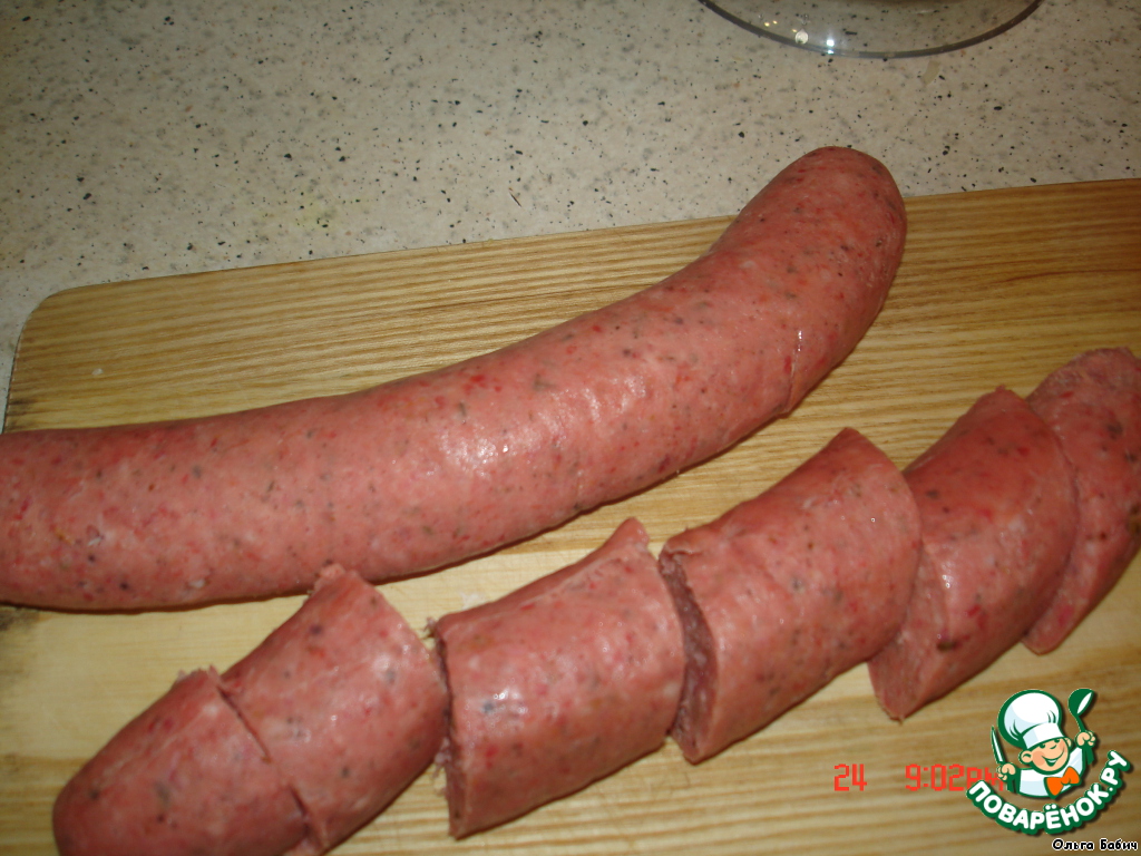 В моих сосисках есть все специи, я ничего не добавляла. Вы по желанию можете добавить душицу, душистый перец.