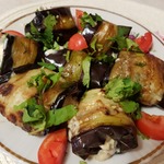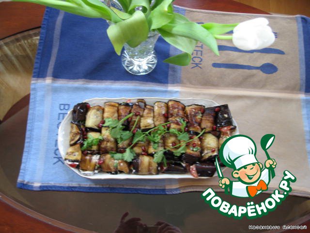 Рецепт «Рулетики из баклажанов с кинзой и томатом»: