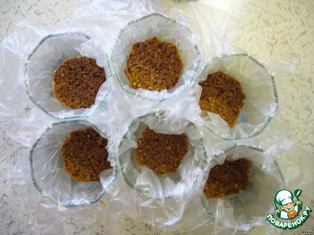 На дно стакана с пакетиком(для удобного извлечения) положила вырезанный корж.