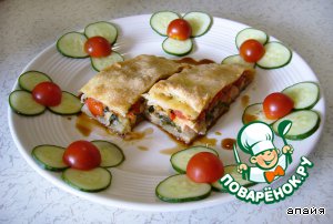 Очень даже хорошая закуска, подходит как для завтрака, так и для быстрого перекуса. Что-то вроде закрытой пиццы, но только гораздо вкуснее.