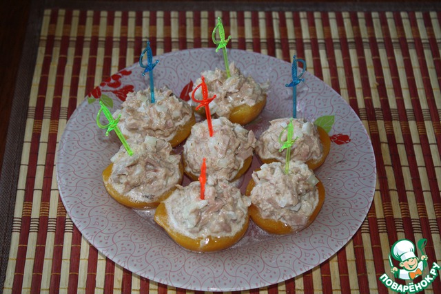 и, если надо, соль. При желании тунец с майонезом и жидкостью измельчить блендером. Получившуюся массу выложить ложкой на персики. Готово!