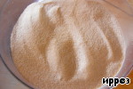 Манку смешать с разрыхлителем.