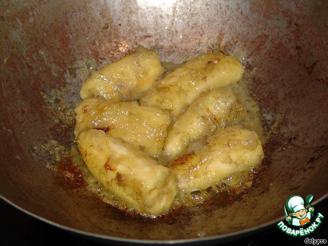 Слишком спелые или уже переспелые бананы не подходят для жарки! Лучше подбирать сладкие, но еще чуть зеленоватые бананы с плотной мякотью.