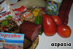 - Мясо (говядина варено-копченая) — 200 г