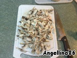 Почистить и порезать грибы соломкой. Нарезать лук.
