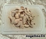 Грибы нарезать пластинками, обжарить на сливочном масле вместе с нарезанным полукольцами луком.