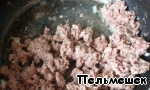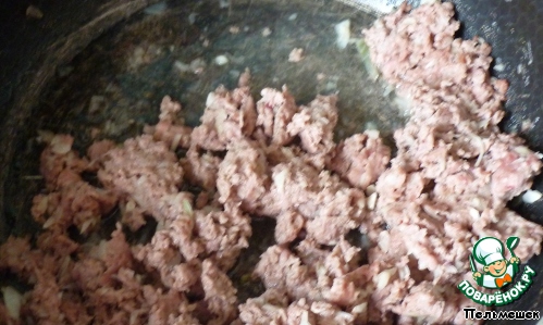 Фарш обжарить с мелко нашинкованным луком и чесноком.