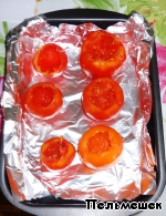 Поместить на противень, выложенный фольгой. Сверху посыпать тертым сыром. -