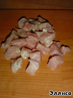Свинину нарезаем кубиками и обжариваем на растительном масле.