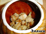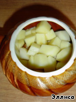 После того как подготовили все ингредиенты, раскладываем их в горшочки.
