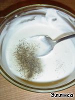 Сметану смешиваем с солью и перцем, перемешиваем,