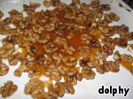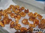 Вынимайте из духовки, когда карамель начнет пузыриться, а орехи станут золотистыми. Дайте слегка остыть. Снимайте орехи с противня, когда карамель еще теплая и вязкая. Когда карамель застынет, орехи будет не оторвать. Если это все-таки произошло, не отчаивайтесь, а просто поместите противень в духовку на несколько минут, чтобы карамель снова расплавилась.