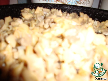 • Шампиньоны измельчить и обжарить вместе с помидором.