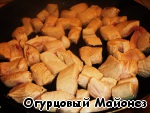 Филе индейки промываем и режем на средние кусочки. Солим по вкусу и обжариваем в глубокой сковороде на растительном масле до белого цвета .