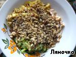 Добавить обжаренные и измельченные грецкие орехи.